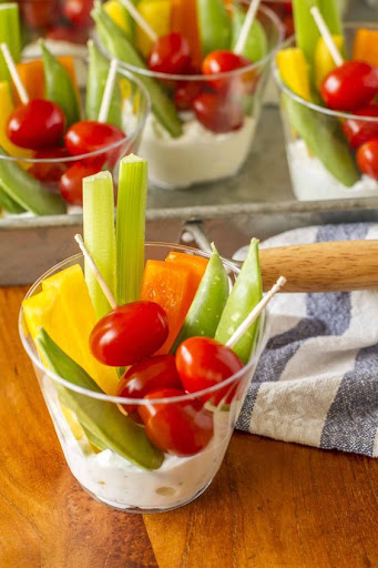 Veggie Cups With Ranch Dip Recipe Veggie Cups Veggies Veggie Appetizers